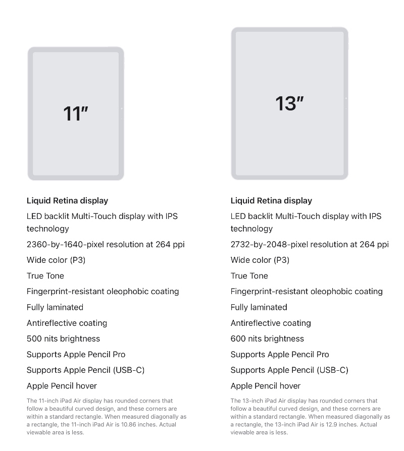 If you go to Apple’s website right now and jump into the iPad Air’s tech specs page and see the screen size section, you’ll get the answer which may disappoint you. Read the fine print at the very end, in case you’re wondering.