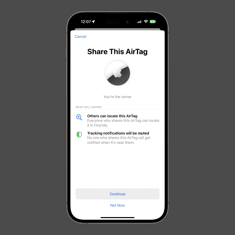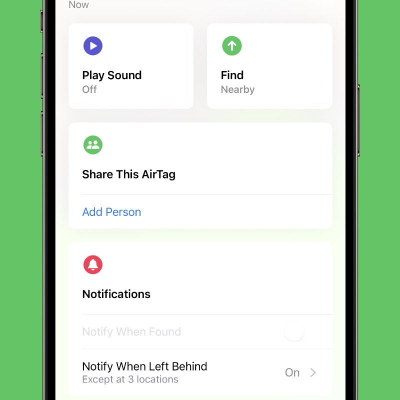 When the AirTag is being shared, the other person won’t get bugged with tracking notifications at all. It’s total bliss.