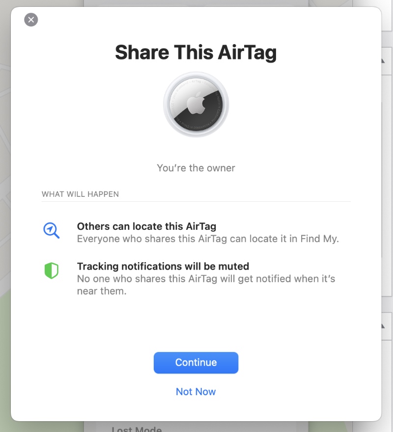 Send AirTag Sharing Request from Mac