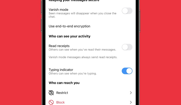 You can go a mile further by turning off the typing indicator from the same settings page, if you like. For now, let’s stick with read receipts.