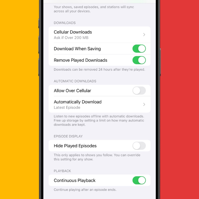 If you really, really want to download episodes for listening on the go, I would only suggest turning the feature on for shows you regularly listen to. Not for each and every single one of them. Being smart about what you allow to download in the background makes perfect sense if you have an iPhone or iPad with less storage.