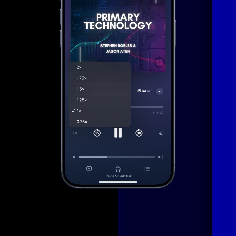 Step 3. Once the podcast is playing on iPhone and iPad, you’ll notice a small ‘1x’ on the left of the playback controls. Tap on it and select the playback speed. You can slow it down to 0.75x or listen at mach 10 by selecting 2x.