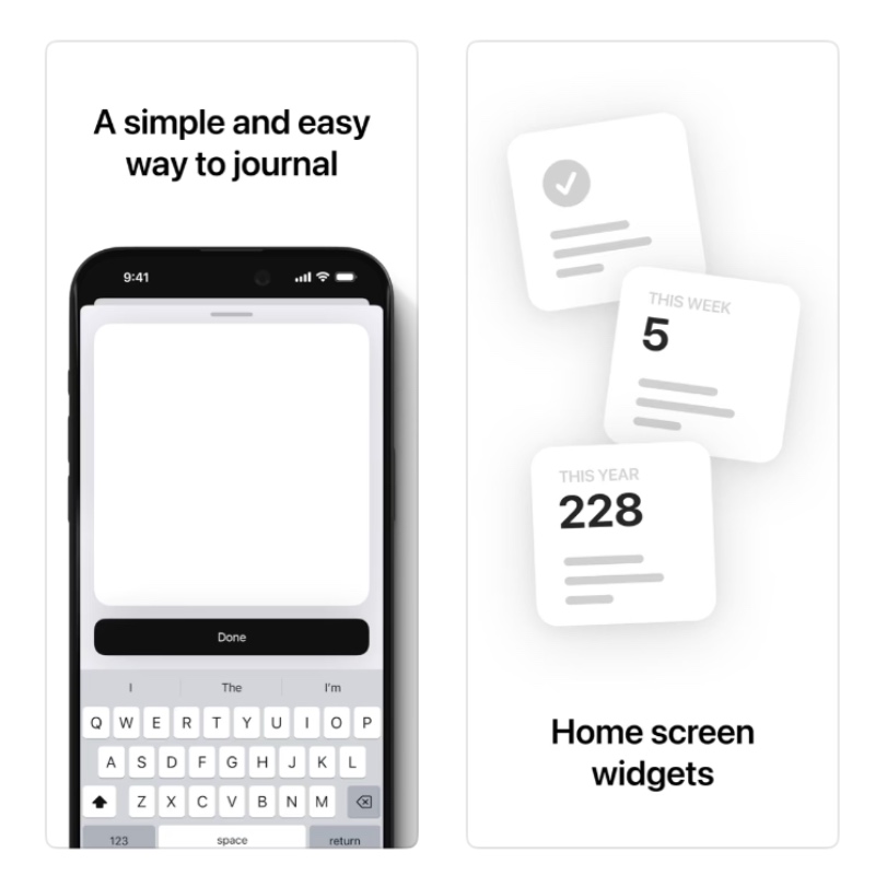 The main screen is what you should only care about. Just type away your thoughts and hit Done. Fancy journaling from the iPhone Home Screen? Just add the Quick Journal widget. The very same widgets will help you keep track of your entries, too.