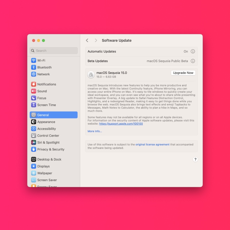 The OTA method is quick and easy and barely takes a few minutes to perform. You can follow the steps below and you’ll be installing macOS Sequoia 15.0 in no time: