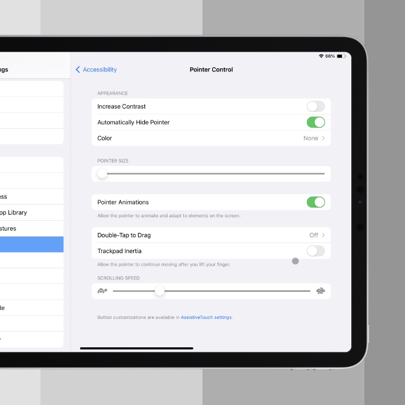 Leaving the pointer inertia on or off is a personal preference. Leaving it on gives iPadOS a bit of character and stacks up nicely to the system animations. But, if you’re not fond of system animations at all, then turning off inertia makes more sense. Again, personal preference, nothing else.