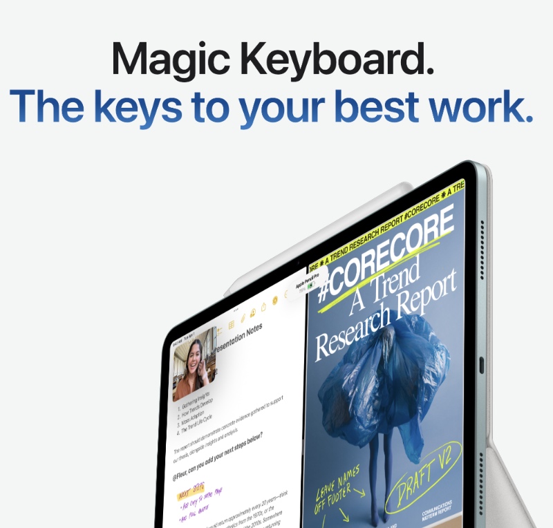 For example, if you’re right-handed, the Apple Pencil tip facing downwards, or to the right, if the Magic Keyboard is connected makes sense. Because you don’t have to monkey around with your fingers to get the Pencil up and ready for writing.