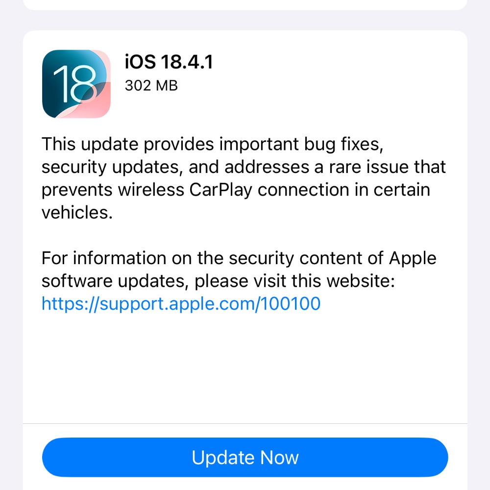As expected, iOS 18.4.1 and iPadOS 18.4.1 have been released. Given the version number, it’s a bug fix release and it will hopefully fix CarPlay issues users have been facing since the release of iOS 18.4.