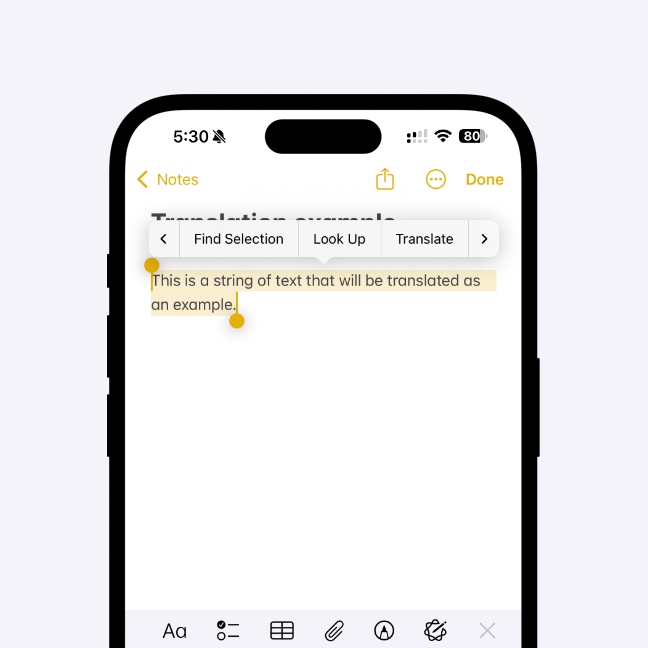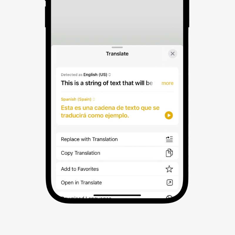You can instantly translate any string of text to the language of your choice right on your iPhone, iPad, and Mac.