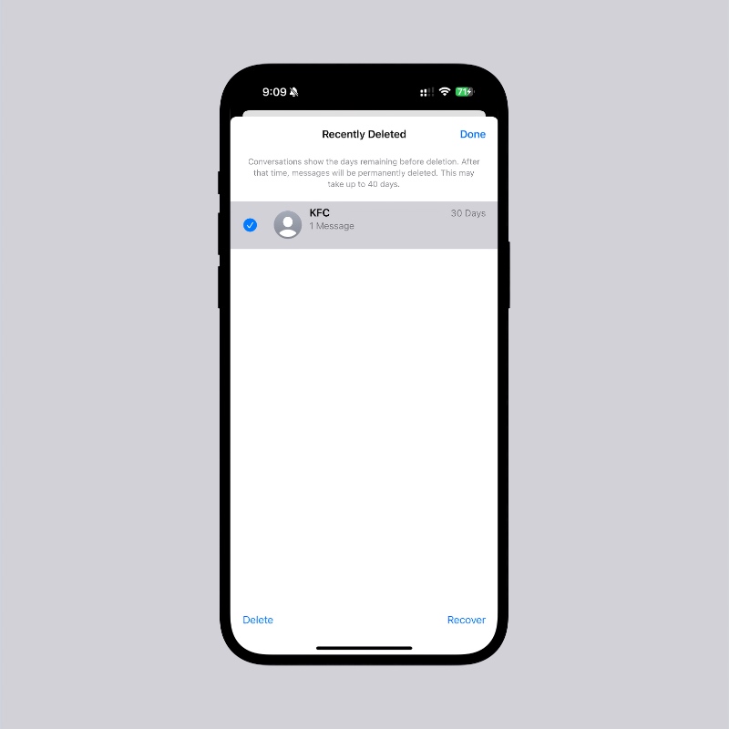 Step 4. You’ll see all your conversation threads which you deleted within 30 days. At the bottom you’ll see Delete All and Recover All. However, if you just want to recover one thread, then select it and then tap on Recover at the bottom right.