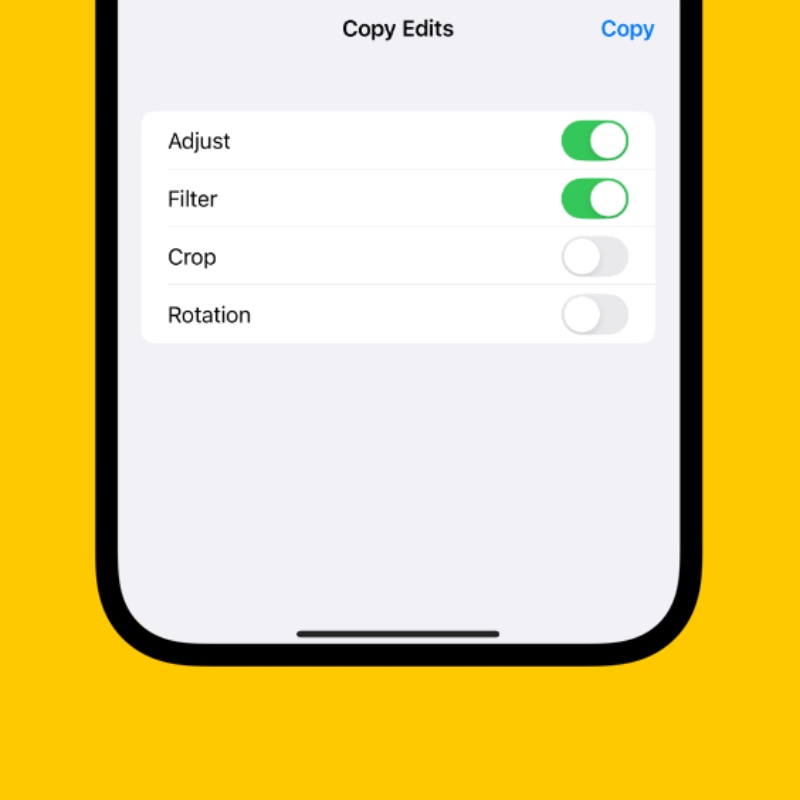 You have the option to copy edits from one photo or video, and paste them onto another in the Photos app for iPhone, iPad, and Mac.