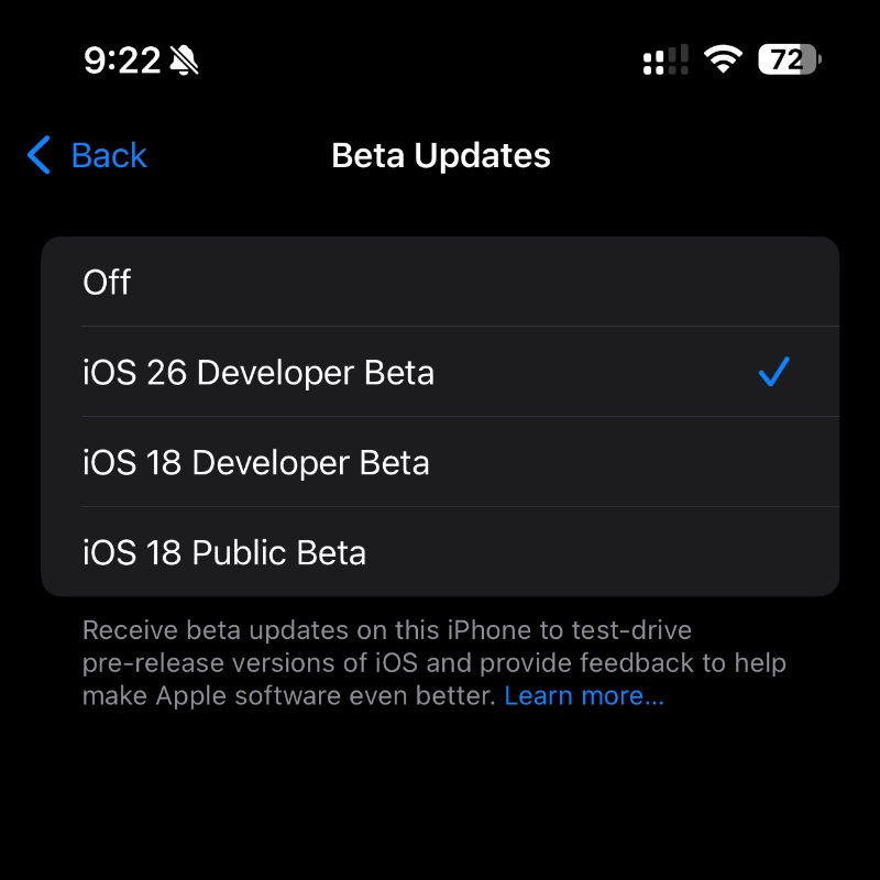 You don’t have to download the iOS or iPadOS beta profile either once you sign up to the Apple Developer Program. You just have to enable the iOS 26 or iPadOS 26 developer beta by going to Settings > General > Software Update > Beta Updates.