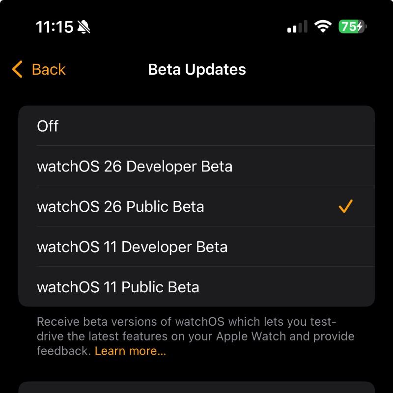 Your Apple Watch should be compatible with watchOS 26, otherwise the update won’t even show up for download.