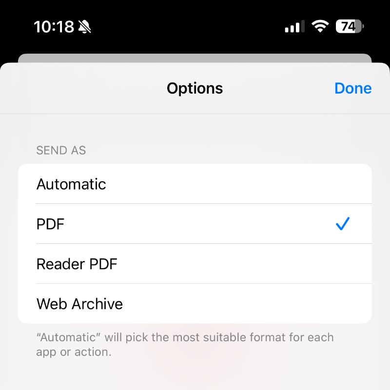 Now select PDF or Reader PDF from the list of options, and then tap on Done.