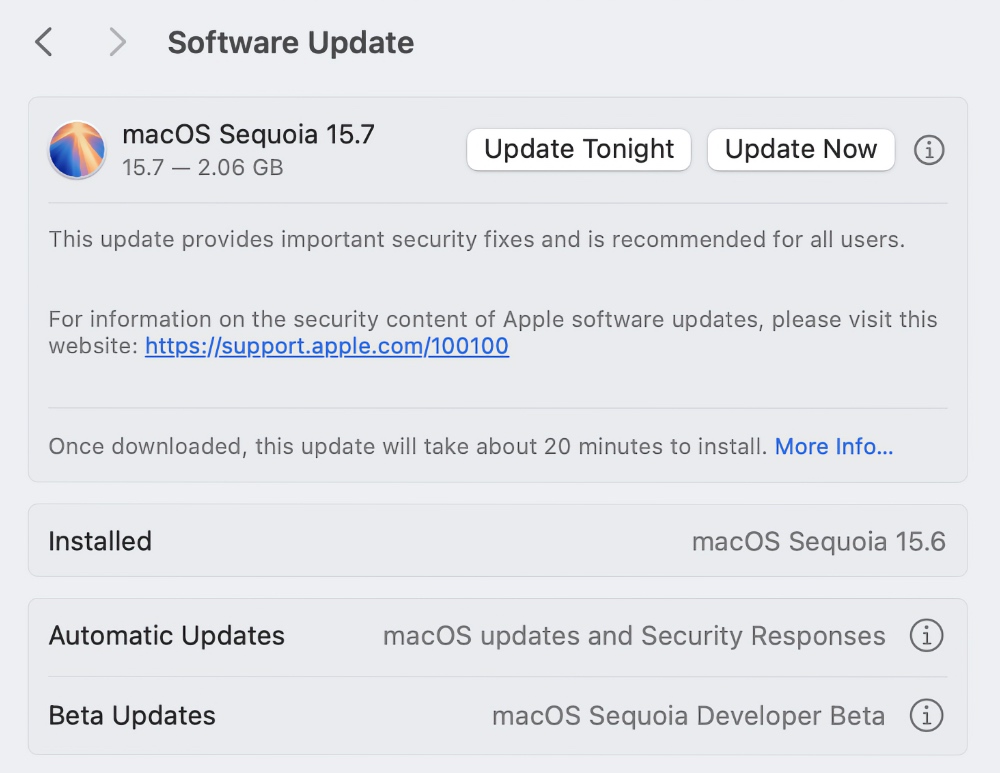 macOS 15.7 RC Now Available for Download on the Mac if You’re a Developer – Addresses Important Security Issue