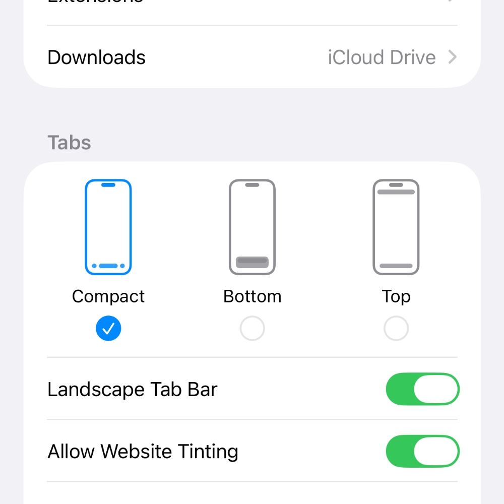 Compact is the default one, Bottom keeps the address bar at the bottom, while Top brings back the traditional Safari UI back, with the address bar at the top of the display.