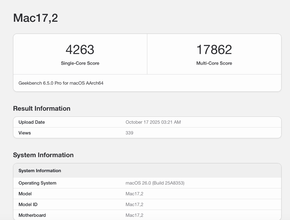 New MacBook Pro with M5 Manages a Single-Core Score of 4,263 in Geekbench, Proving Apple’s Claim of Fastest Single-Core CPU Performance