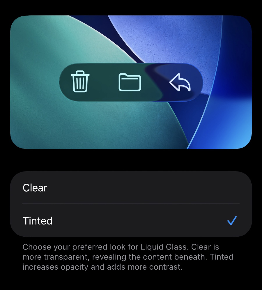 This is the step that completes the dark mode look. All you have to do is switch Liquid Glass from Clear to Tinted. I’ve covered this in detail, and you’ll find everything about it here.